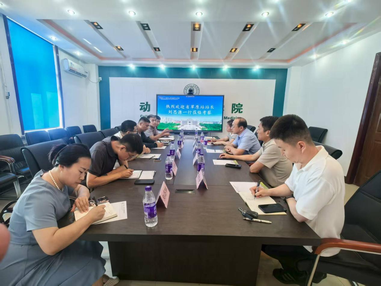 2025年7月15日,黑龙江省草原站刘思源站长,臧奇聪、程力一行来访我院,大庆市草原湿地中心王俊峰主任、常峰站长、刘苏林陪同。
