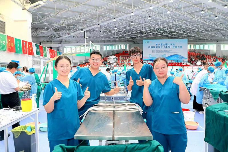 本届大赛由中国兽医学院院长联席会和中国兽医协会联合主办,东北农业大学承办,吸引了全国71所本科高校代表队参与角逐。由我院动物医学专业梁树轩、张小雪、万鑫、苏欣雨和吕亚欣五位同学组成的代表队发挥出色,凭借精湛的临床技能和稳定的临场表现,荣获团体特等奖,实现我院在该项赛事中的“三连冠”。同时,代表队还在“山羊瘤胃切开术”单项比赛中获得优异奖。