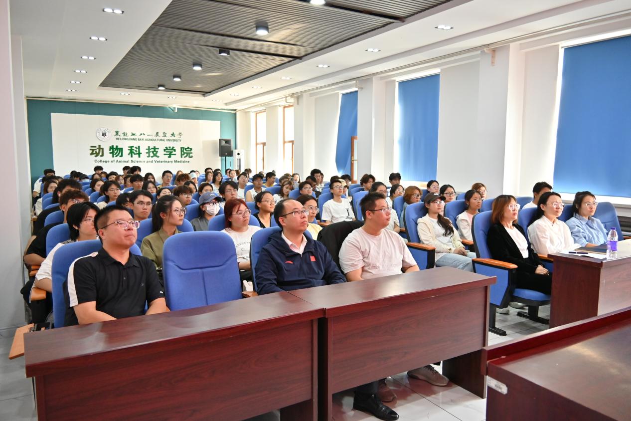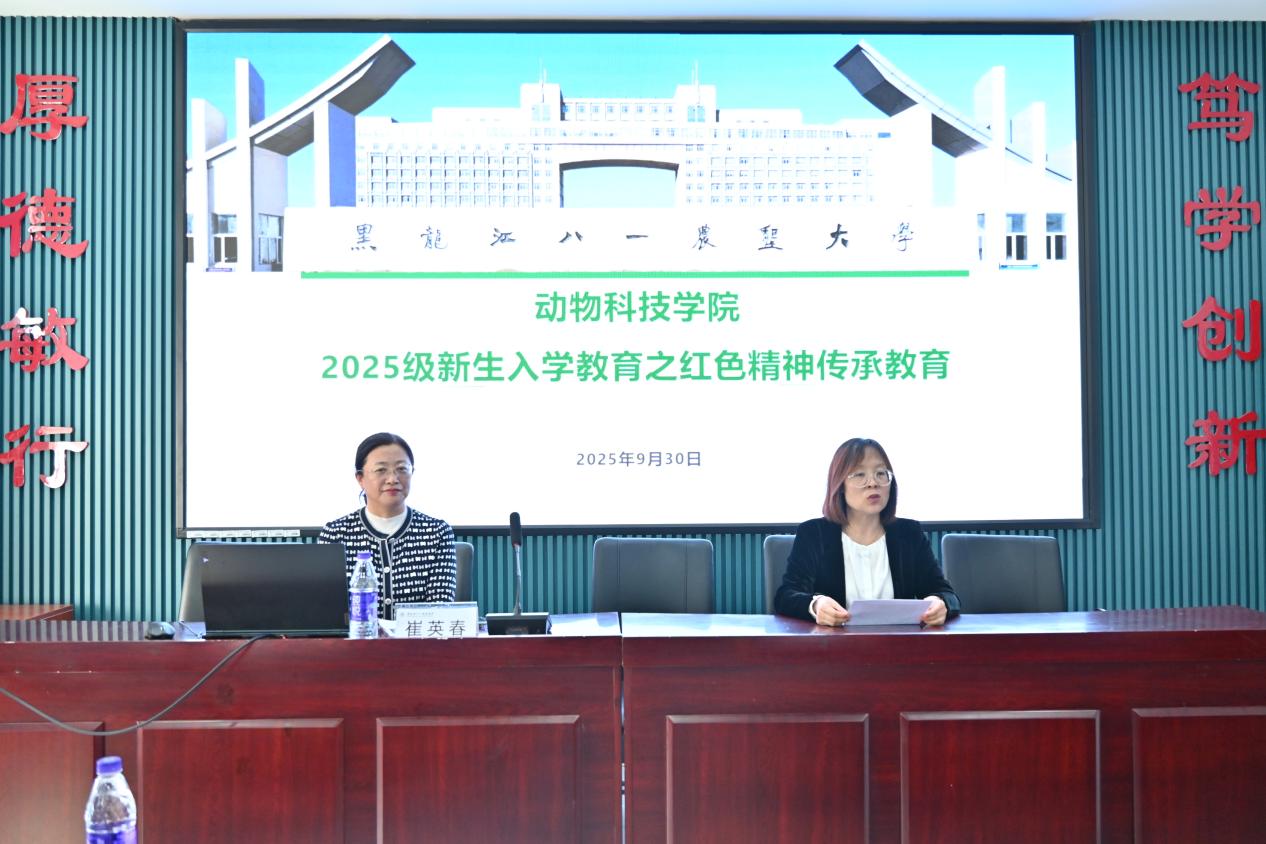 2025年9月30日,动物科技学院邀请教授级政工师、中国作家协会会员、中国报告文学学会会员崔英春以“以青春赴使命,以专业兴农垦—从父辈足迹看龙江精神的传承与践行”为题开展2025级新生入学红色精神教育专题报告,带领同学深入探寻北大荒精神、大庆精神铁人精神的根源、内涵与当代传承。活动由学院党委副书记郑永文主持。