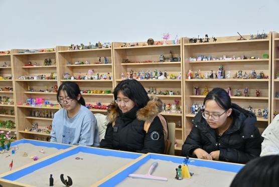 活动现场设置多个体验区域,由花香社成员全程提供引导服务。其中,身心舒缓区的按摩椅设备让同学们在忙碌学业之余放松肌肉、缓解疲惫;在心理状态自测区,同学们通过仪器快速掌握自身近期的情绪状态、压力水平等指标;沙盘活动环节,在花香社成员的专业指导下,心理委员们参与沙盘创作,通过挑选、摆放沙具自由表达内心想法与感受,过程中相互观察、沟通协作,并在解读彼此作品时学习倾听与共情技巧,更帮助自己学会从多角度理解他人情绪。
