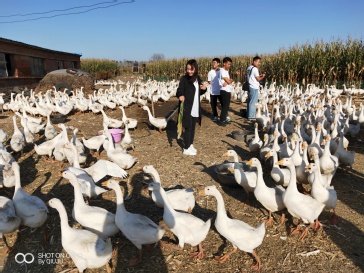 团队有黑龙江省“三区”科技人才和科技特派员7人,他们不仅在所派的村进行指导,临近的县村,只要养殖户有技术需求,团队成员都毫不犹豫就前往指导,并给出因地制宜的饲养管理建议。在过去9年里,团队先后在我省30个地区、北大荒集团25个农场,辽宁、山东、河南、河北、江苏、浙江、安徽等全国12个省62个县村示范推广“玉鹅种养”生态农业技术成果,建设百亩示范田11个,合作养殖场7个,共带动超3.7万人,养殖白鹅超3000万只,促进农民增收超50亿元;并助力包括我省林甸县、青冈县两个深度贫困县,贵州和广西的4个未摘帽贫困县等7300多个贫困户养鹅脱贫。