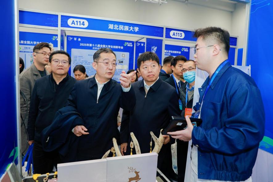 在双创成果展示环节,教育部高等教育司副司长高斌亲临我院“冬季生茸”项目展区,与项目团队进行了深入交流。项目负责人王纪元同学向高副司长介绍,该项目聚焦北方鹿业“冬季无茸可收”的产业需求,针对鹿群季节性生理周期导致的“冬季停产”行业瓶颈,提出了通过精准激素调控诱导梅花鹿与马鹿在冬季实现反季节生茸的技术方案,成功实现鹿茸生产从“一年一收”到“一年多收”的模式突破,显著提升了养殖效益,龙江鹿业产业升级与养殖户增收提供技术支撑。高斌副司长对项目立足寒地农业特色、以技术创新服务乡村振兴的定位给予高度评价,并勉励团队依托学院学科优势持续推进研究深化与成果转化,让科研创新真正服务于地方产业发展。