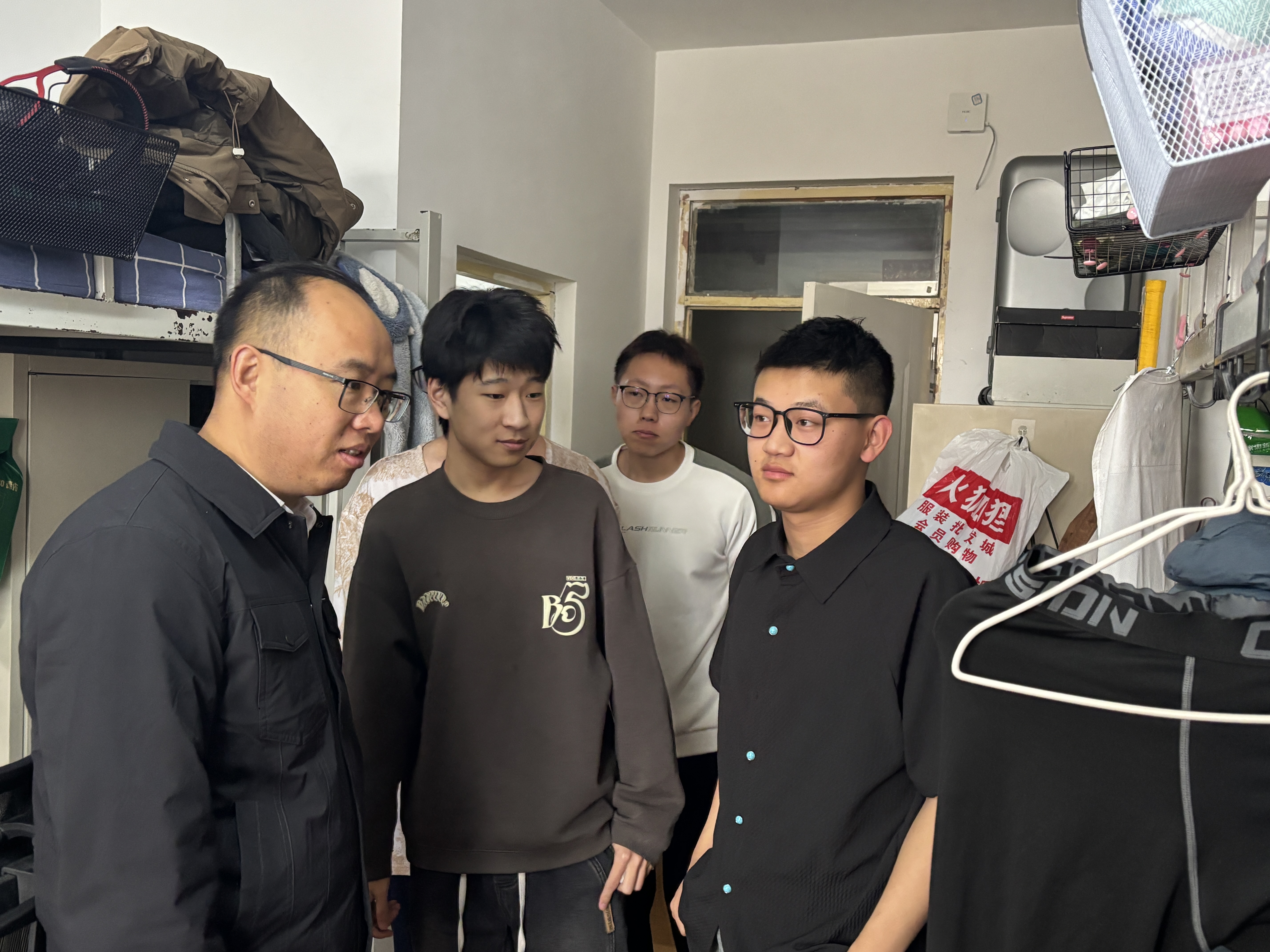 学院党委书记王天亮带领全体辅导员下沉学生宿舍,开展全覆盖、无死角的安全隐患排查工作,为学生营造安全、有序的居住环境。此次排查重点围绕用电安全、消防安全、财产安全等关键环节开展,辅导员认真查看宿舍内电路、插座、电器使用情况,并对学生做好出行安全、人身安全等风险提示。针对排查中发现的安全隐患,辅导员们当场指出、现场整改,建立安全隐患排查台账并在后续工作中持续做好整改跟踪落实。